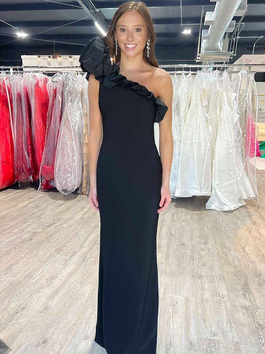One Shoulder Mermaid Ruffled Satin Long Prom Dress