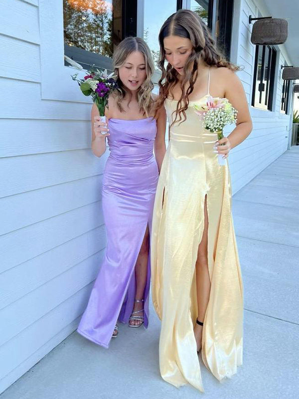 Yellow Mermaid Spaghetti Straps Prom Dress With Slit