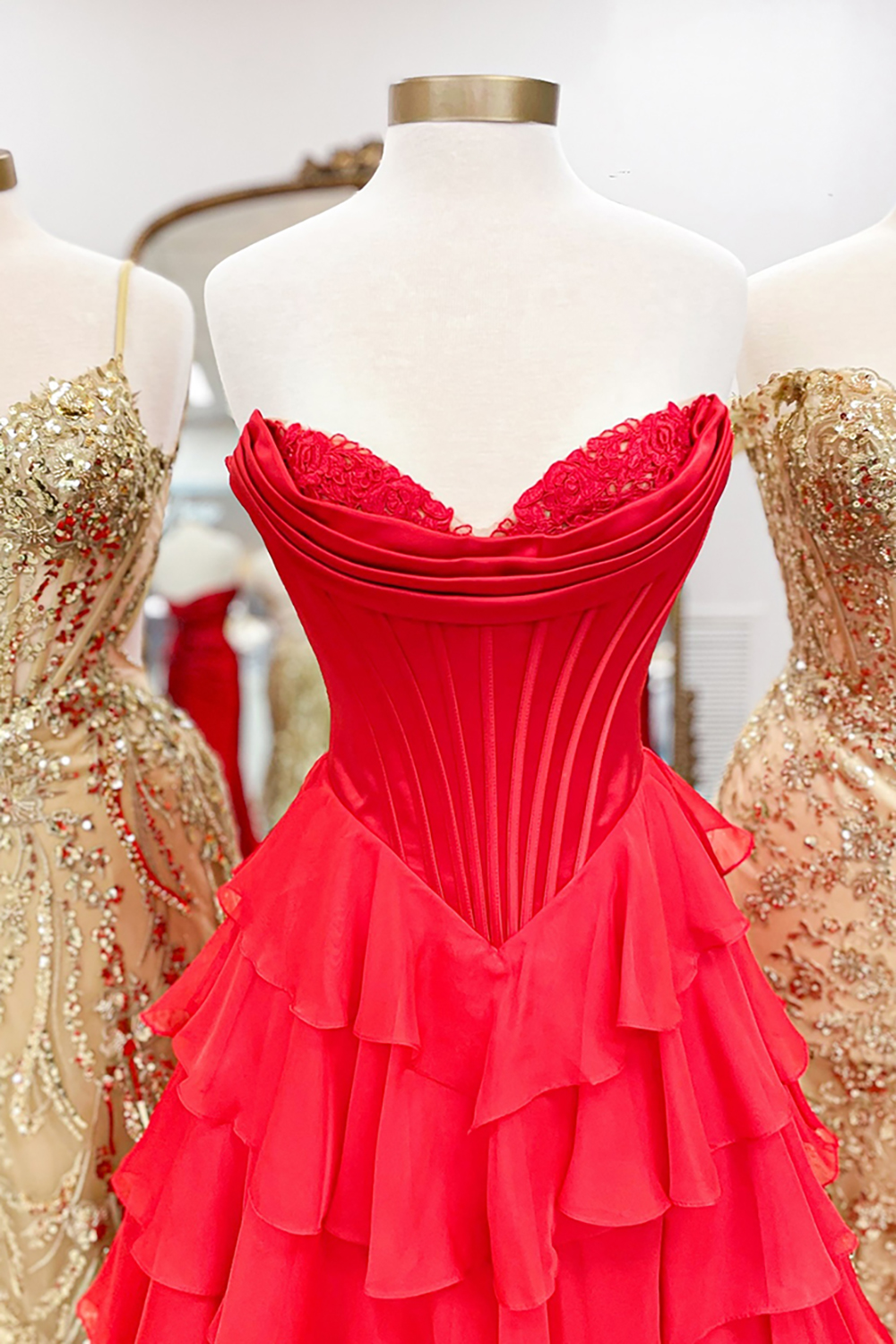 Blue Sweetheart Ruffled Long Corset Prom Dress with Slit