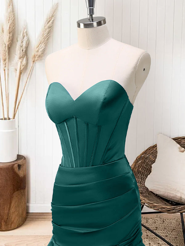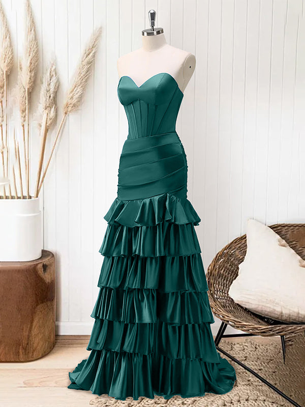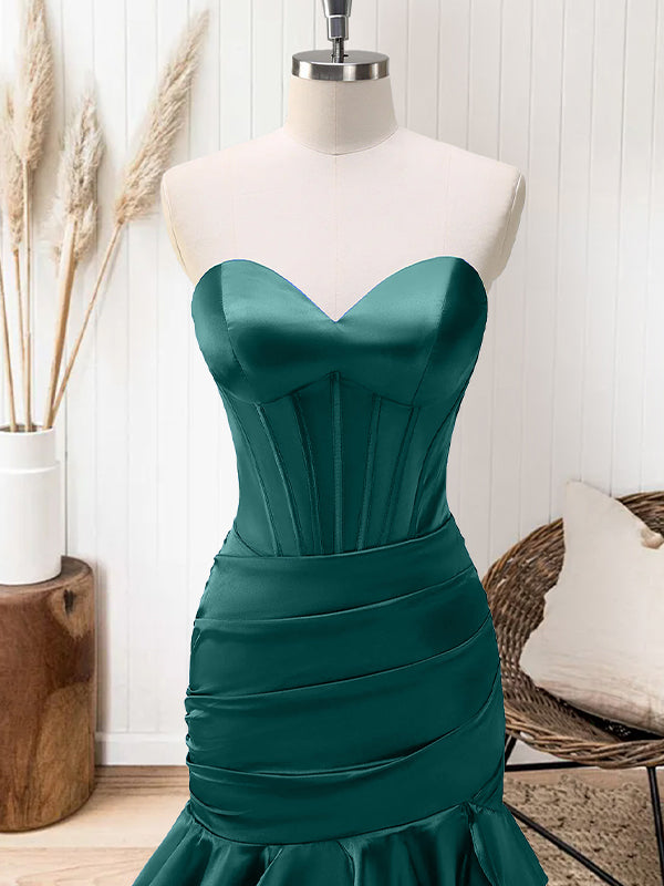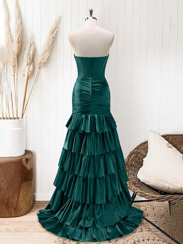 Green Mermaid Strapless Corset Tiered Long Prom Dress