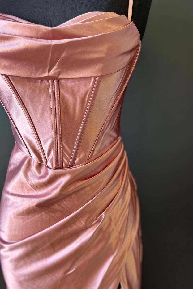 Hot Pink Spaghetti Straps Satin Mermaid Prom Dress with Slit