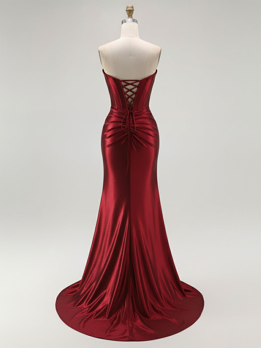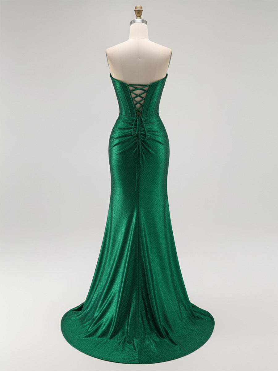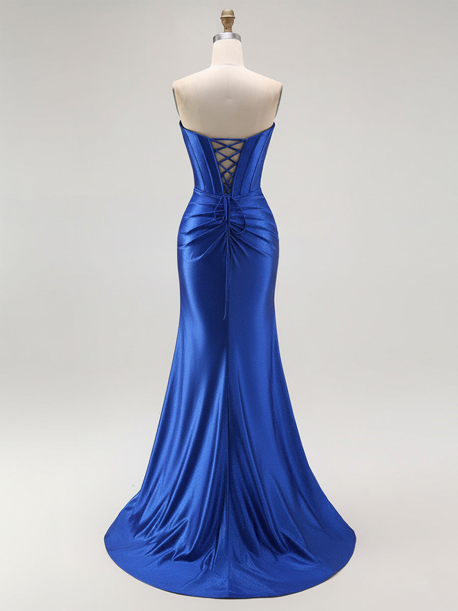 Mermaid Corset Ruched Long Prom Dress with Slit