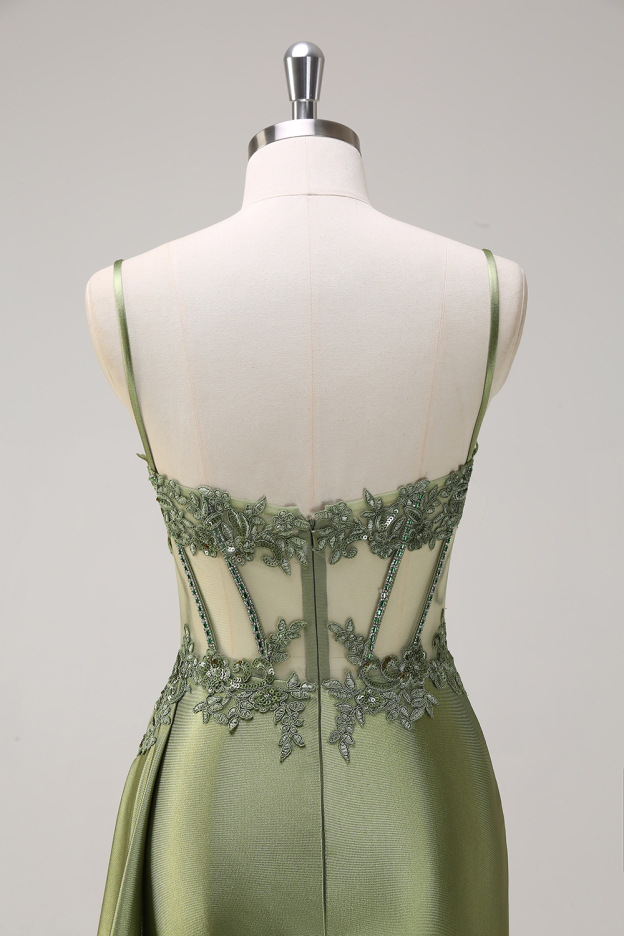 Mermaid Silver Spaghetti Straps Corset Prom Dress with Appliques
