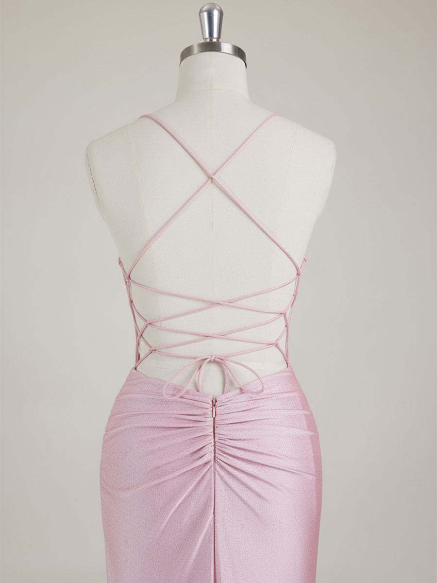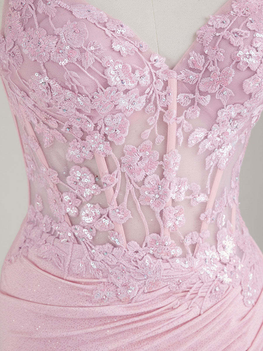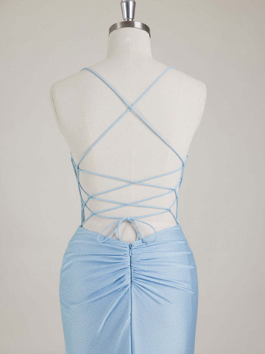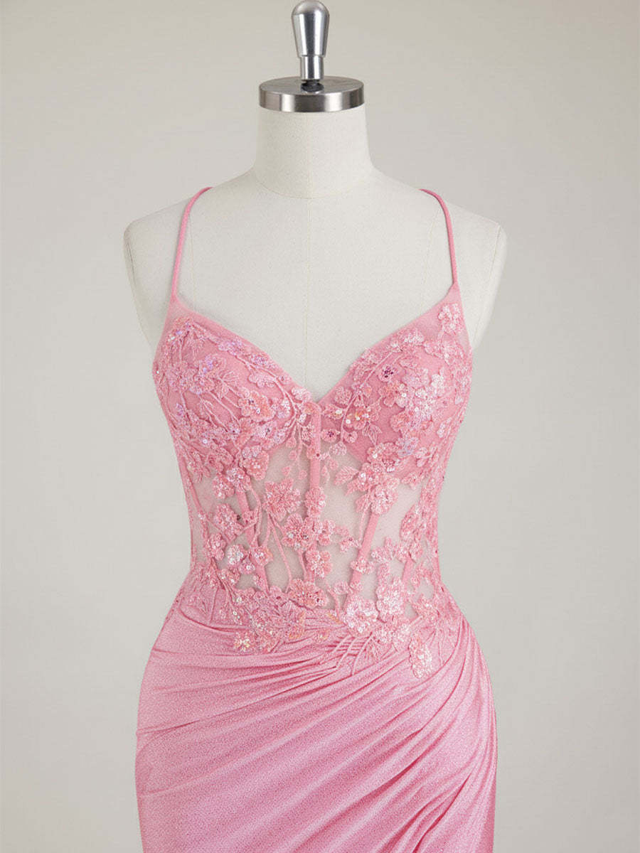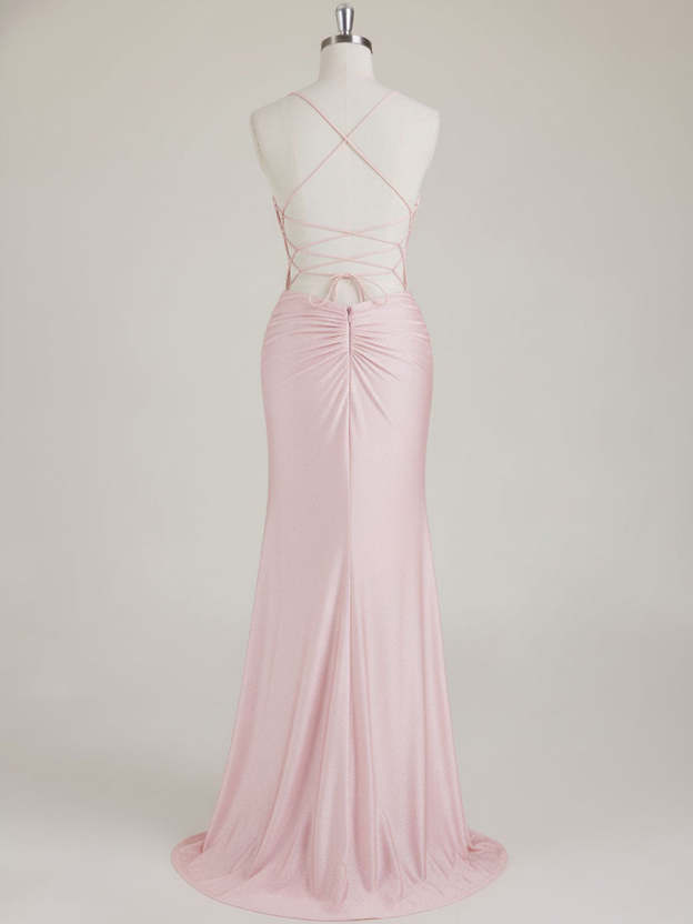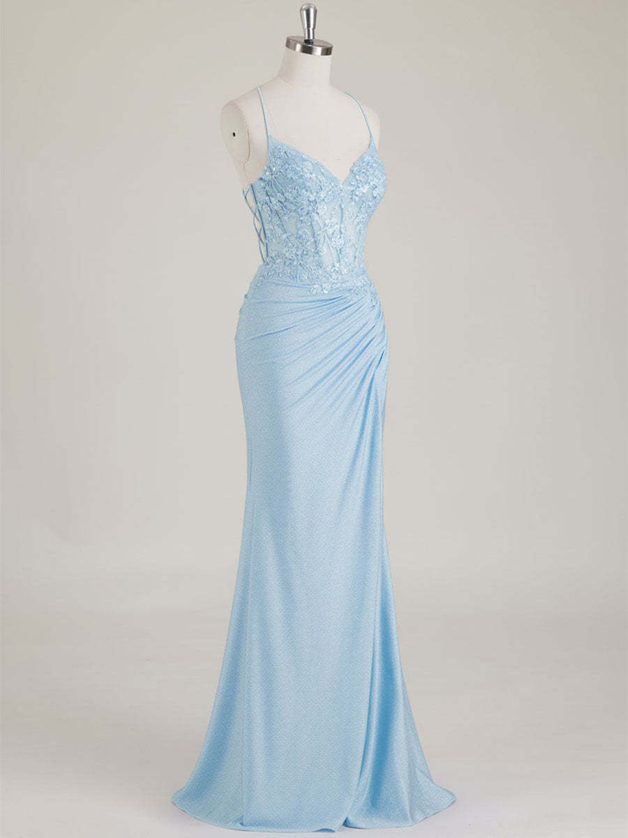 Mermaid Spaghetti Straps V-Neck Sequins Prom Dress with Slit